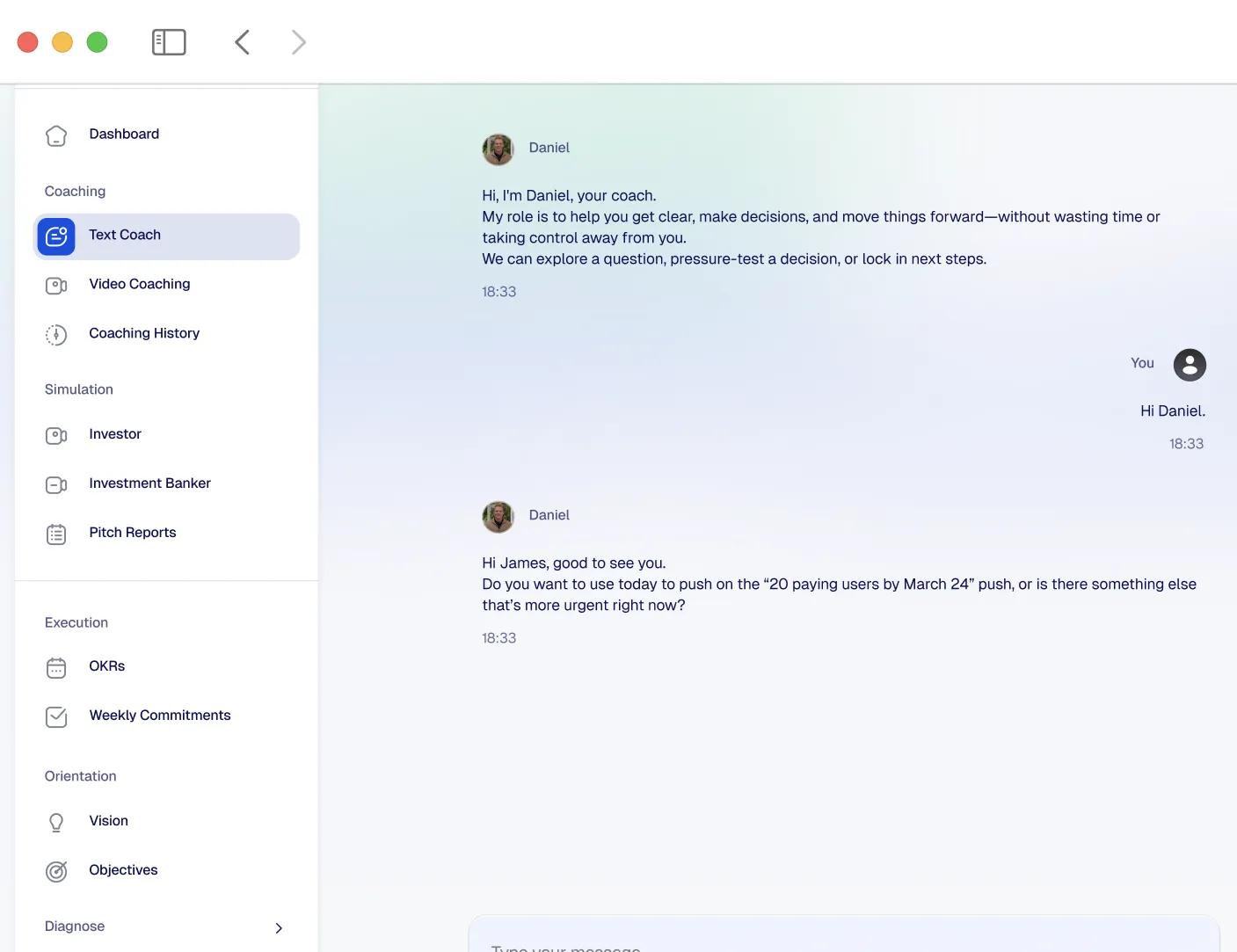 This is what a coaching conversation feels like. Pick a challenge. Talk it through. See why this isn't ChatGPT.